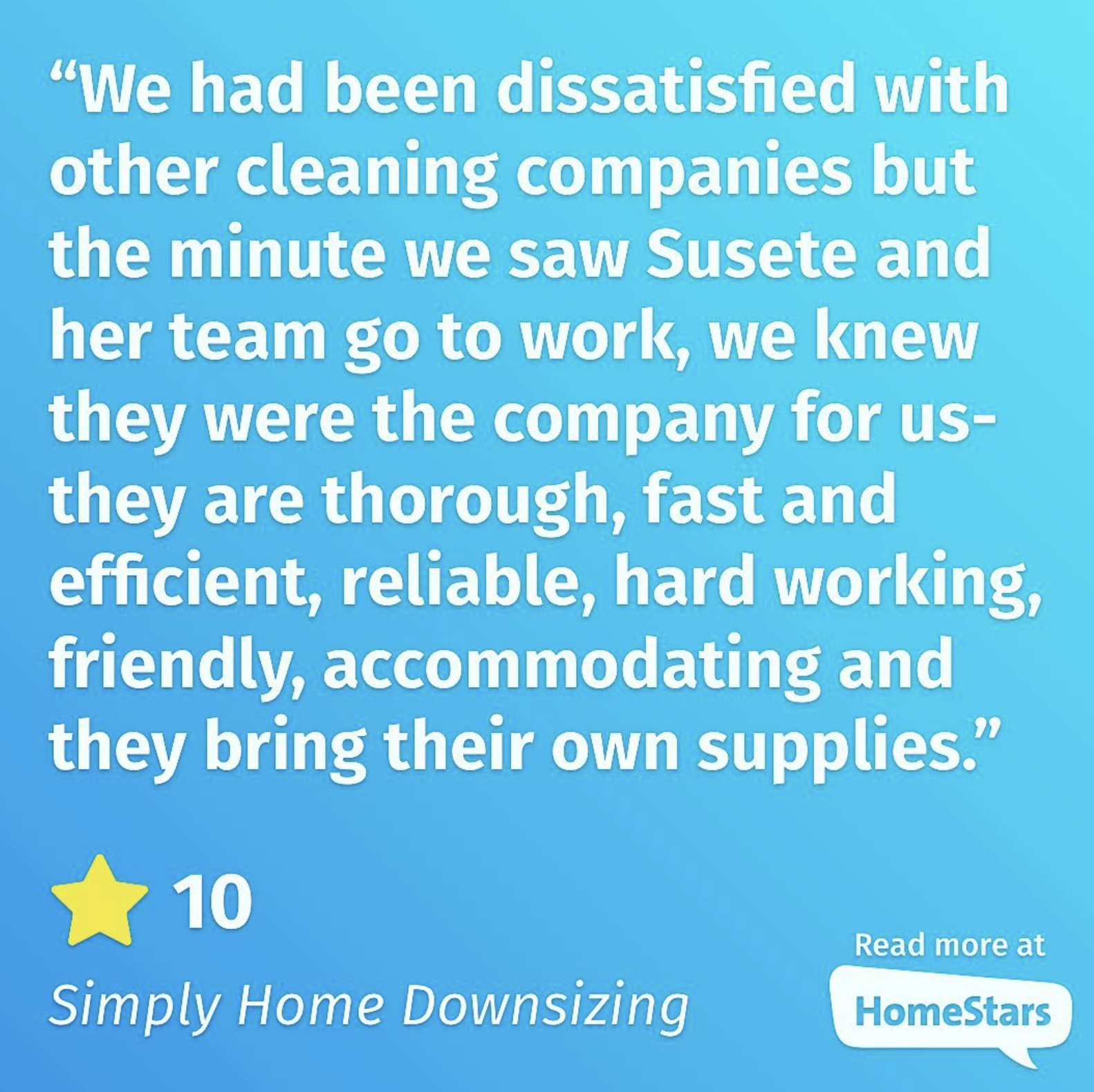 Susete and her team are dedicated to delivering reliable, detail-focused cleaning tailored to each client’s needs. Our trained professionals are dependable, trustworthy, and committed to maintaining the highest standards of cleanliness and care in every home we service.